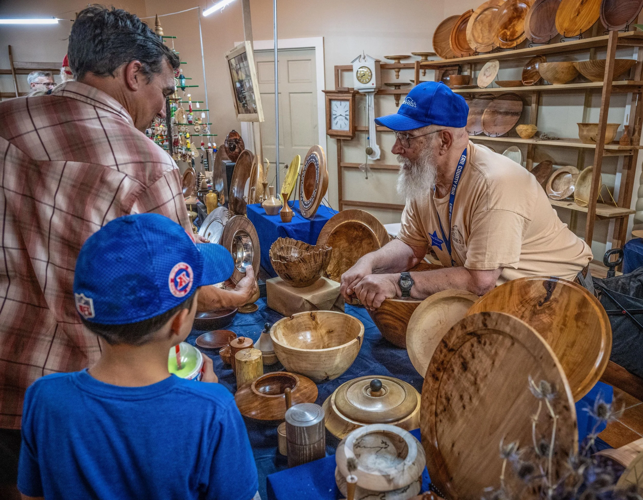 Our members donate our time and materials throughout the year to make bowls, tops, toys, ornaments, goblets, cutting boards, and many other wooden items to be sold at the Erie County Fair. 100% of the proceeds goes to WNY Make-A-Wish.